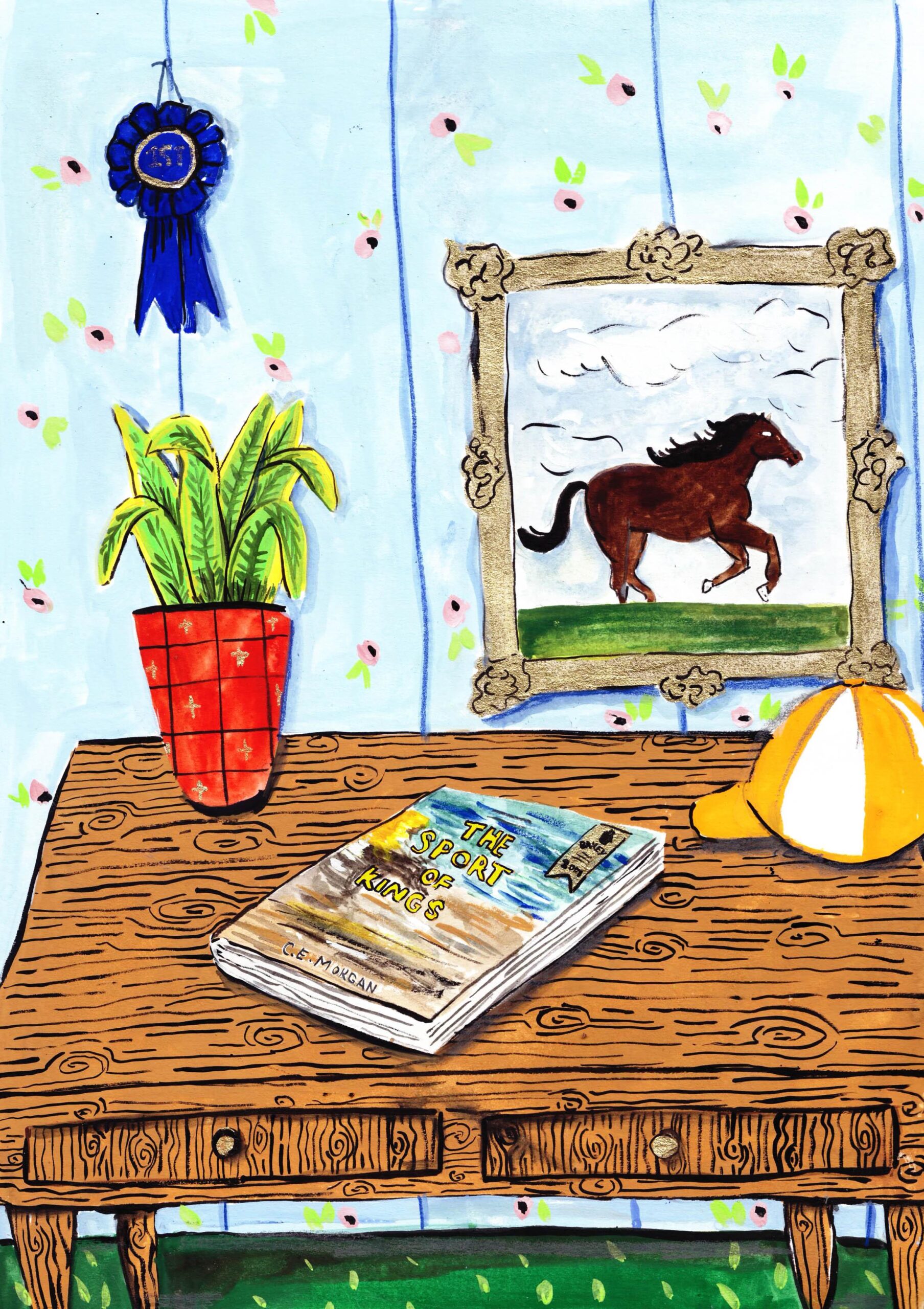 Ella commented on her illustration themed around The Sport of Kings: ‘The book itself dives into the lives of two families that are worlds apart one a privileged white family with strong families ties to the founders of Kentucky and a African American family descended from slaves, mix in the competitive sport of horse racing, money and lust and you can imagine it’s truly a gripping read. It is a hefty book and I must admit I am only halfway through but it is up there with some of my favourite books. So I wanted to bring some vibrancy and colour to the illustration.’