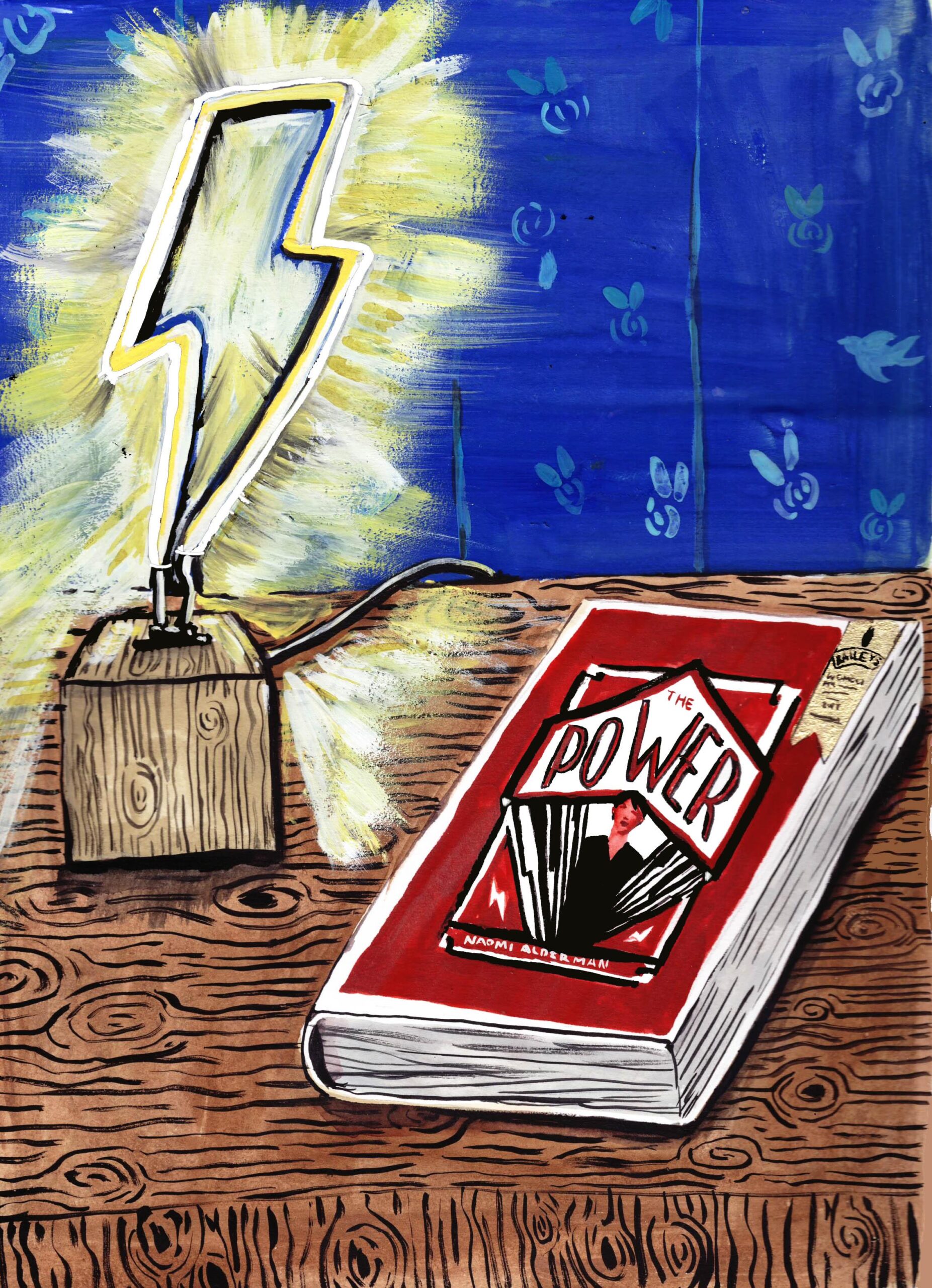 Ella said of her artwork inspired by The Power by Naomi Alderman: ‘Now, The Power proved to be a really dynamic illustration and I love the giant lighting bolt lamp […] I am in fact half way through this wonderful book, women in this novel are capable of inflicting such strength through their fingertips that it really makes you look at the world differently. The front cover of the book is actually pretty striking and I wanted to get the contrast in colours and the deep meaning behind the book in this one simple illustration.’